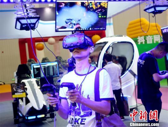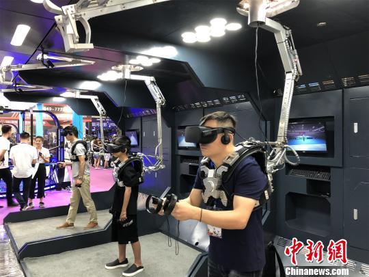 在展覽現(xiàn)場(chǎng),近100種黑科技設(shè)備吸引游客參與體驗(yàn)。戴上VR眼鏡,手持游戲設(shè)備,游客即進(jìn)入了一個(gè)虛擬現(xiàn)實(shí)的未來(lái)世界,或化身拯救世界的超級(jí)英雄,打怪升級(jí);或與擊劍高手一決高下。